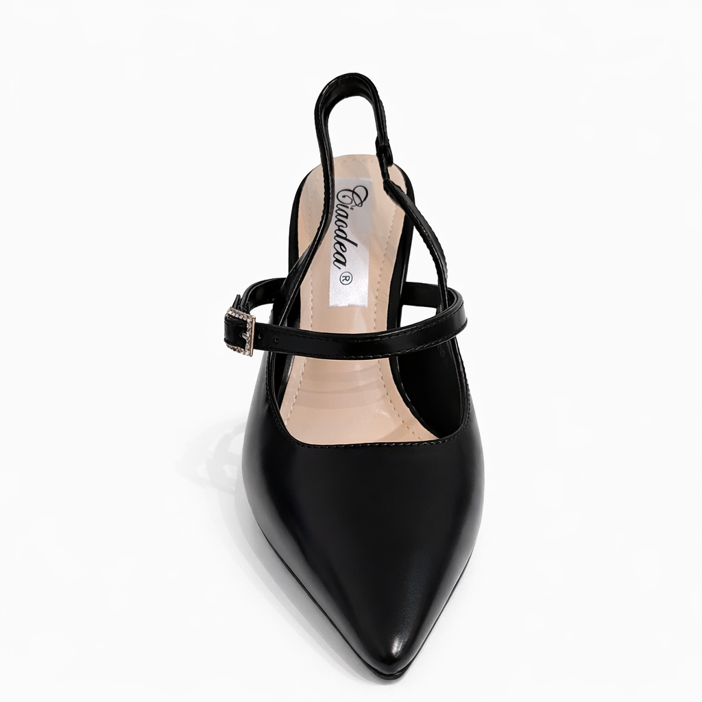 Il tacco sottile e slanciato dona eleganza alla camminata, mantenendo al tempo stesso una buona stabilità. Il cinturino posteriore slingback avvolge delicatamente il tallone, garantendo una calzata femminile e confortevole.