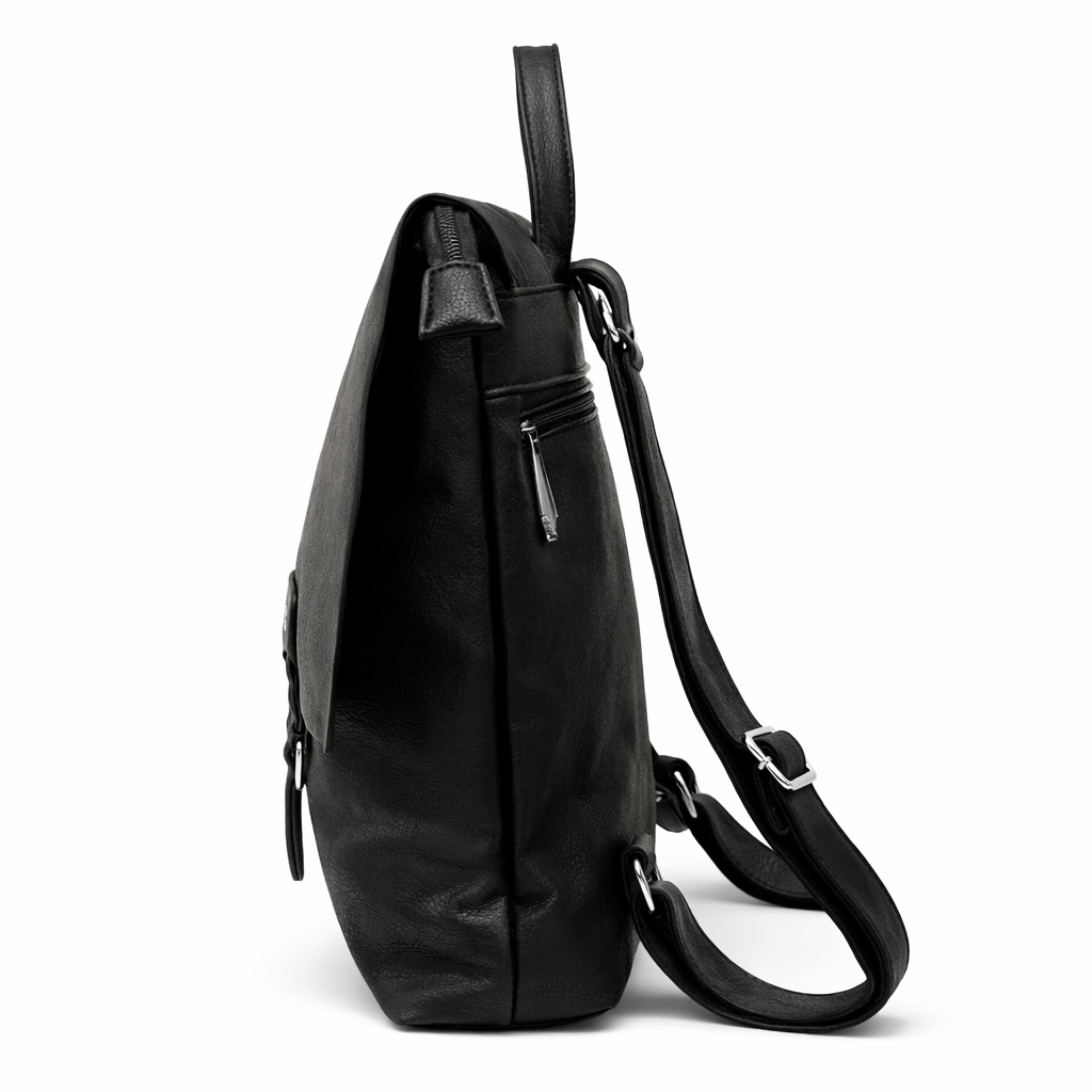 La chiusura con patta e fibbia frontale dona carattere allo zaino, mentre il logo Coveri Collection applicato aggiunge un tocco distintivo ed elegante. L’interno è pensato per organizzare al meglio gli oggetti personali, rendendolo adatto sia al tempo libero che agli impegni di tutti i giorni.