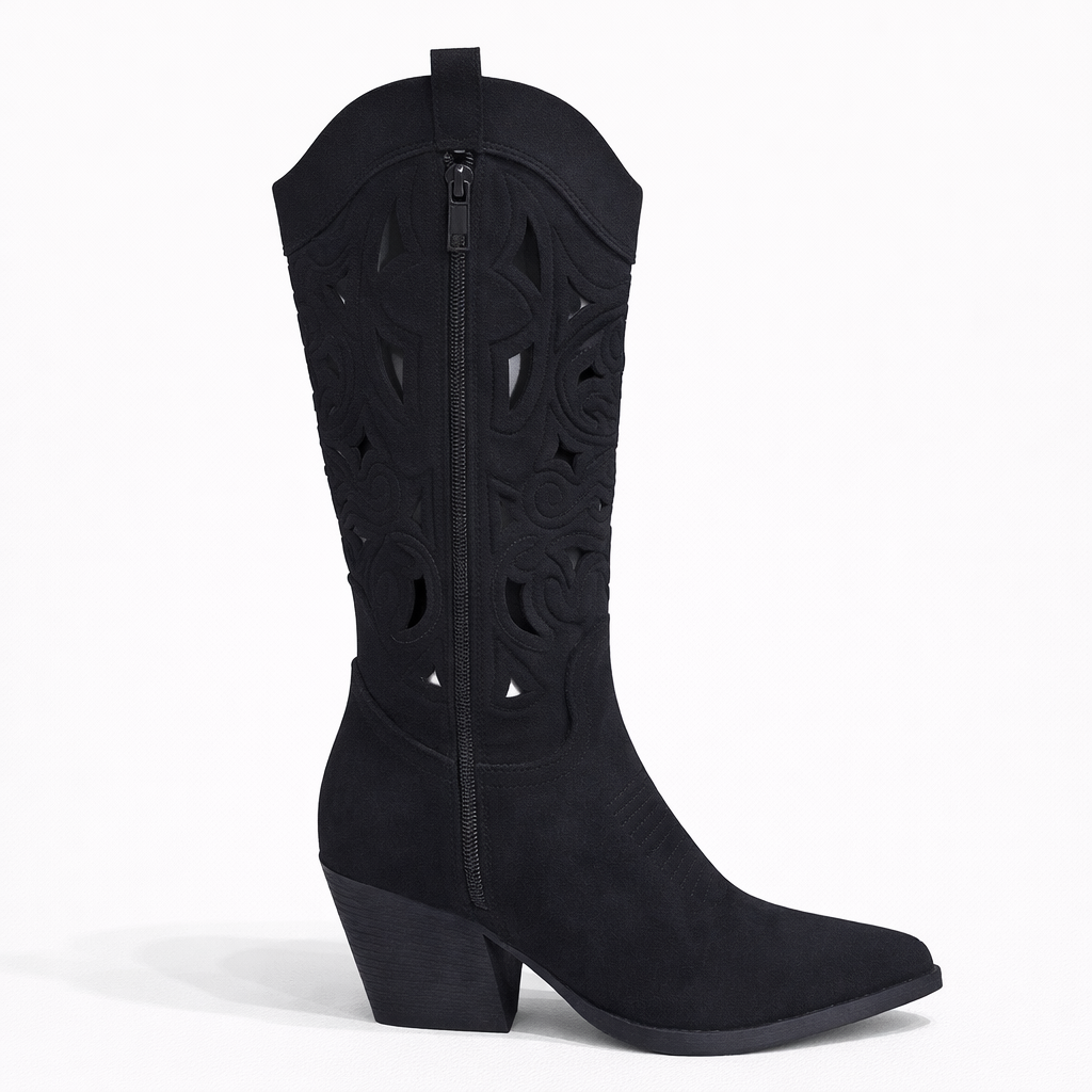 Questo stivale alto in stile texano unisce il fascino western a un design moderno e femminile.