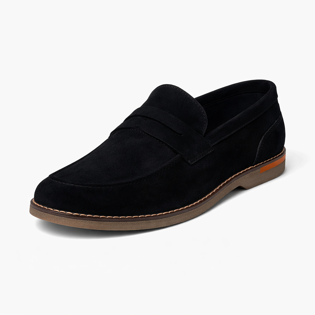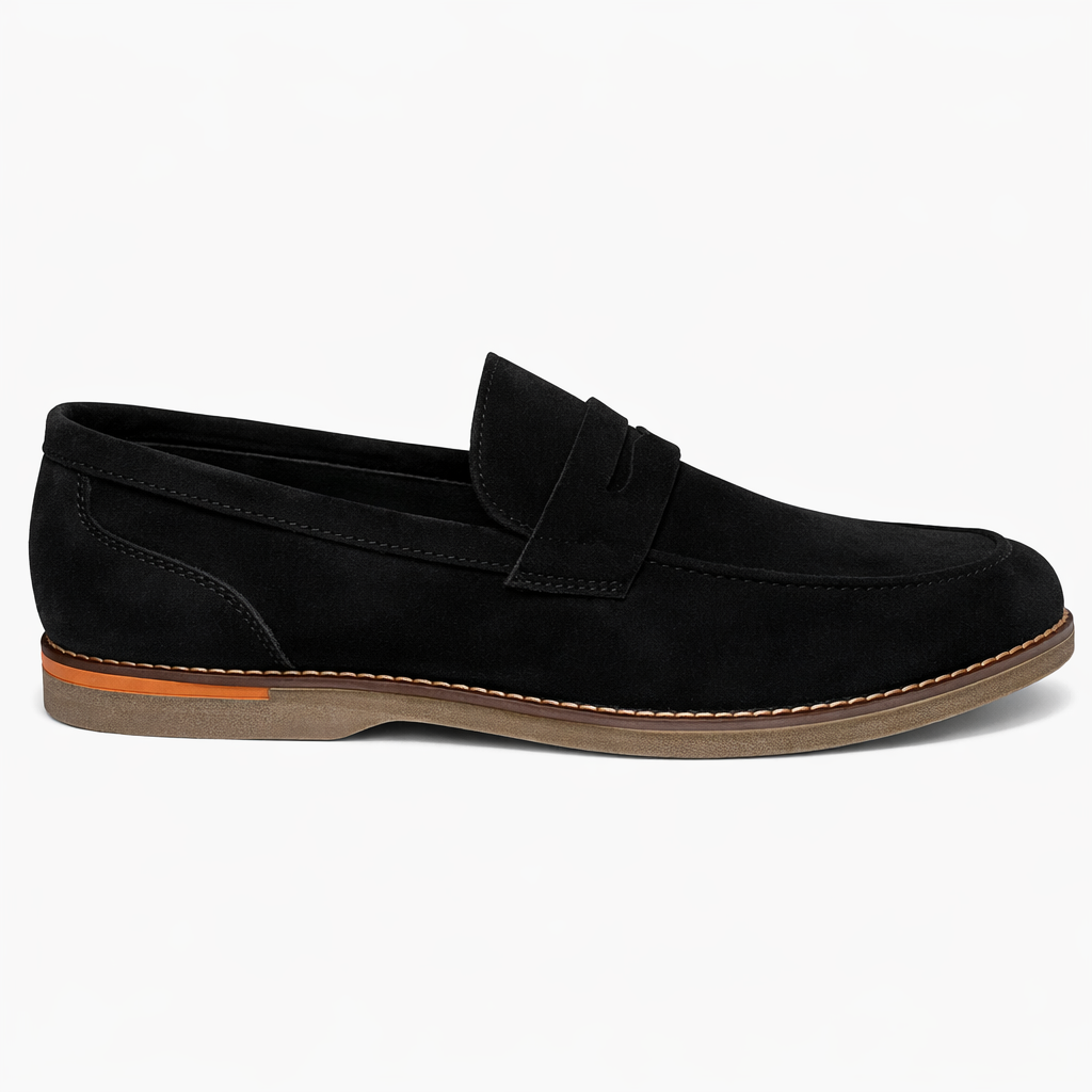 Il Mocassino Jorge è una calzatura da uomo raffinata ed essenziale, pensata per chi cerca uno stile elegante ma comodo da indossare ogni giorno. Realizzato in morbido camoscio nero, presenta una linea pulita e senza tempo, perfetta sia per contesti formali che casual chic.