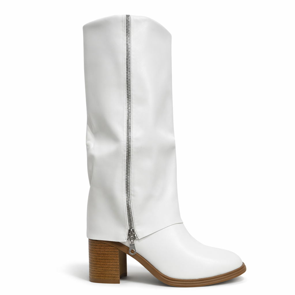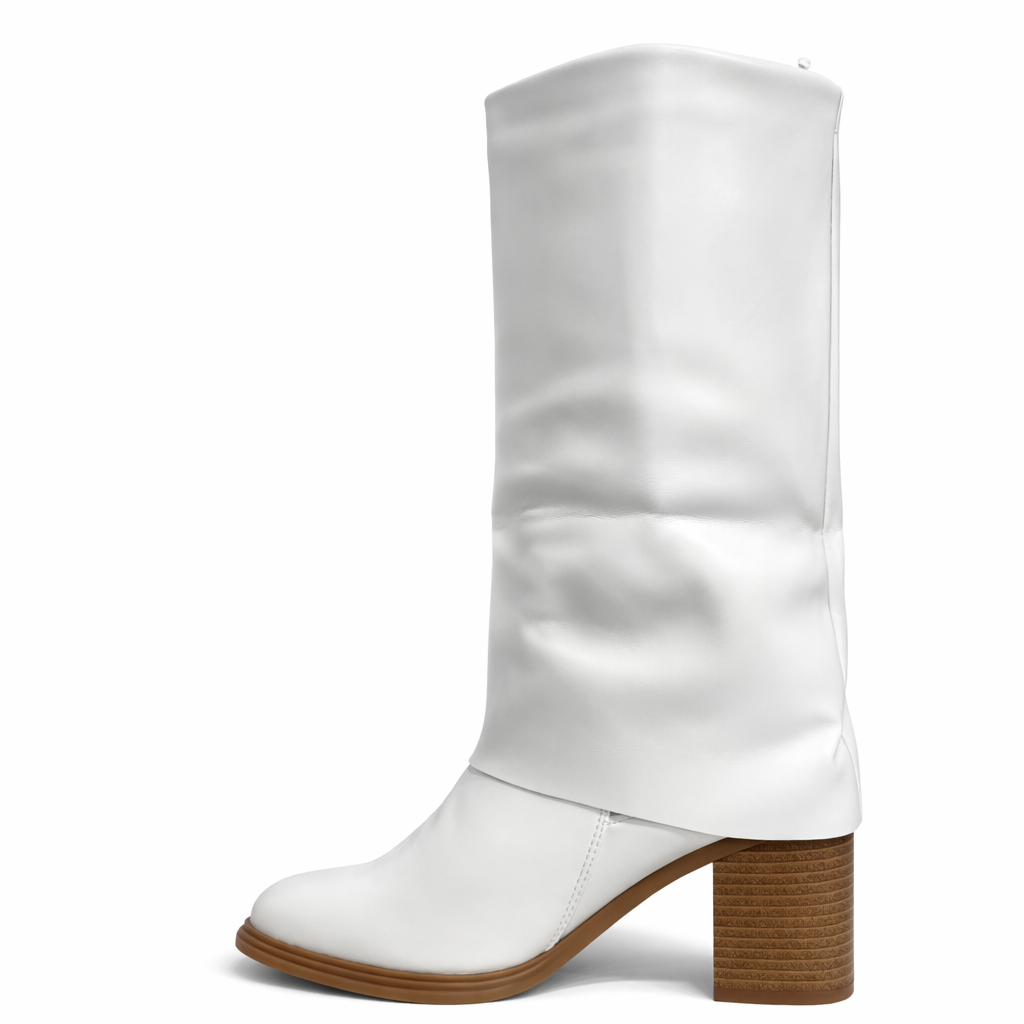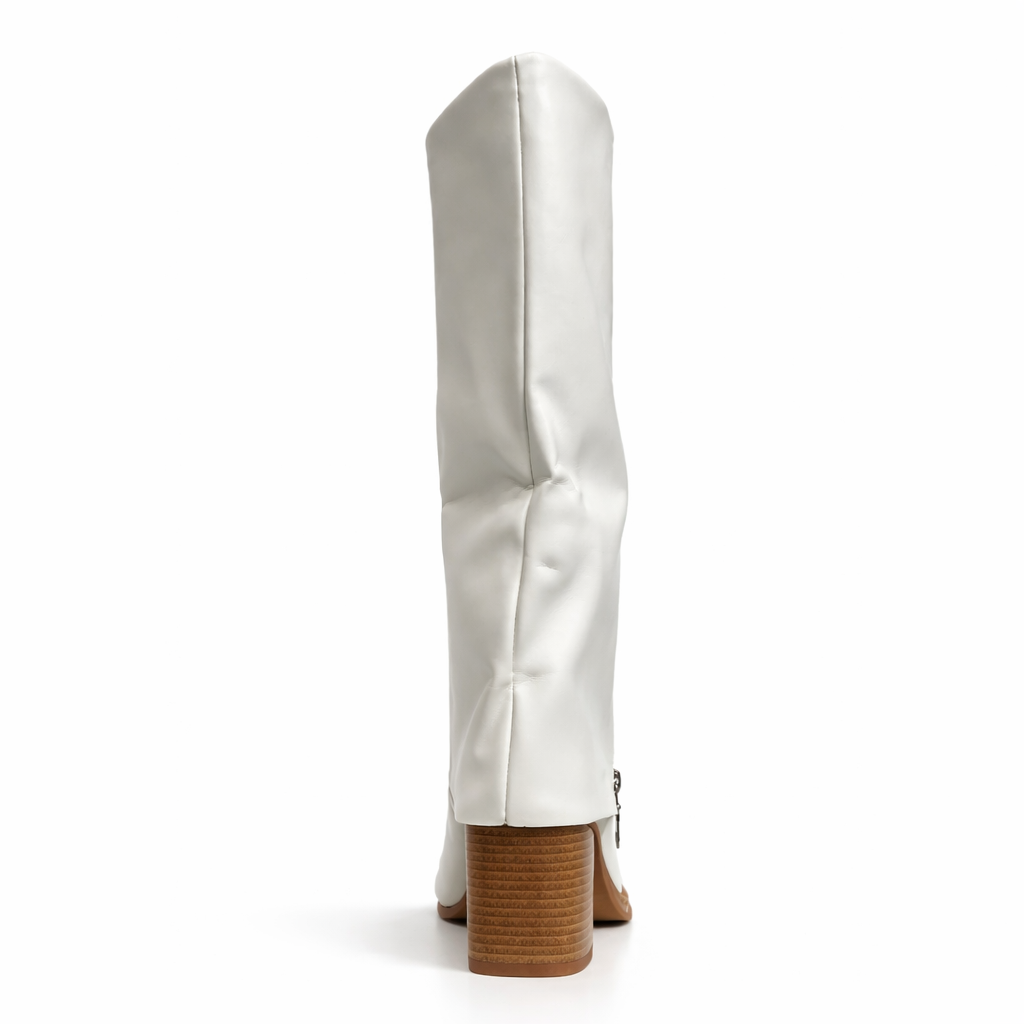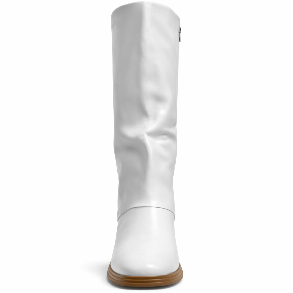 Stivale da donna dal design pulito ed elegante, pensato per valorizzare ogni outfit con uno stile raffinato e contemporaneo. Realizzato in materiale effetto pelle bianco, presenta una linea slanciata e minimale che lo rende estremamente versatile, ideale sia per look quotidiani che per occasioni più curate.
