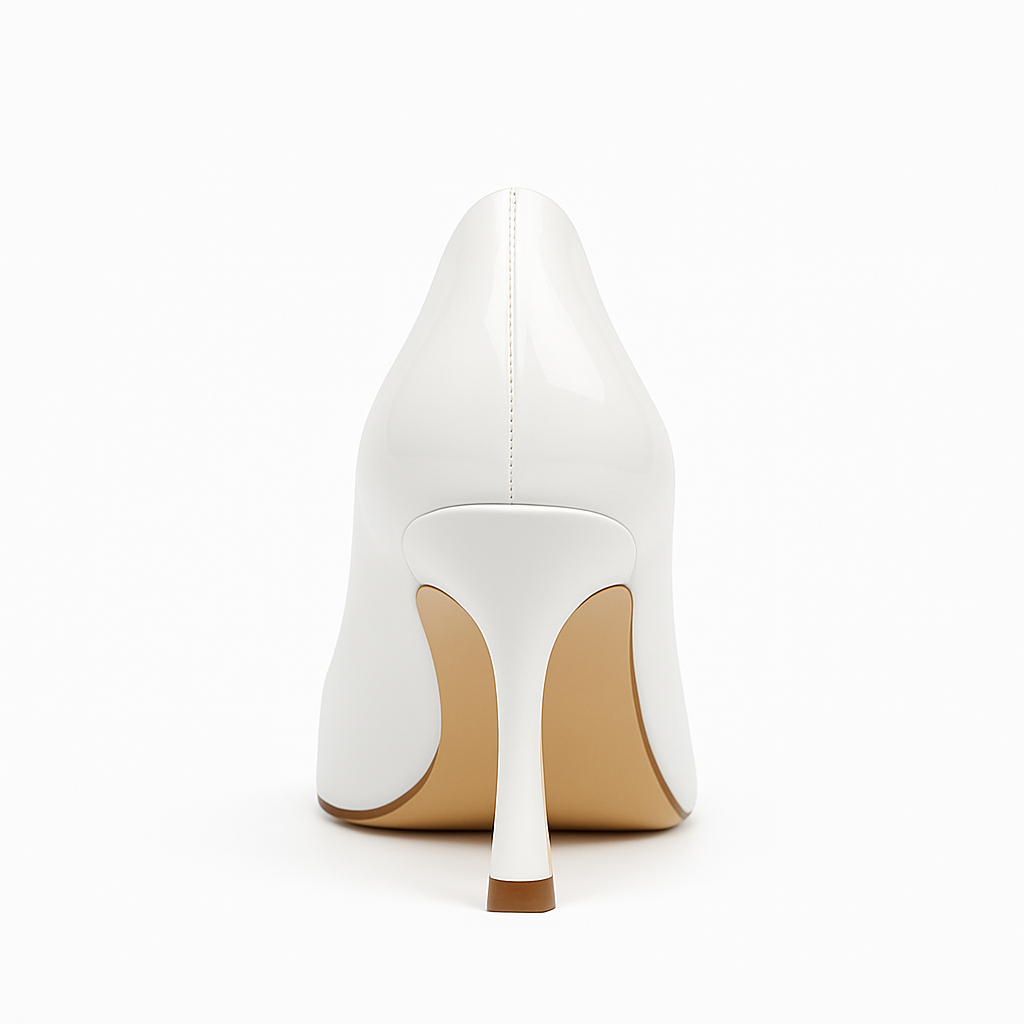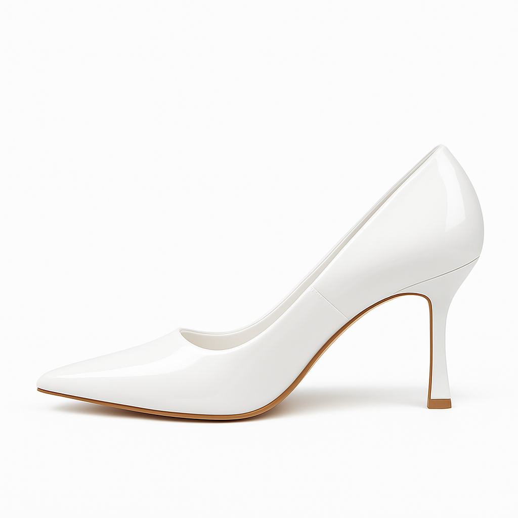 La punta affilata slancia la figura, mentre il tacco medio-alto sottile assicura femminilità e stabilità, rendendo il modello ideale sia per l’uso quotidiano che per eventi serali. La finitura lucida cattura la luce con discrezione, aggiungendo un tocco raffinato a ogni outfit.