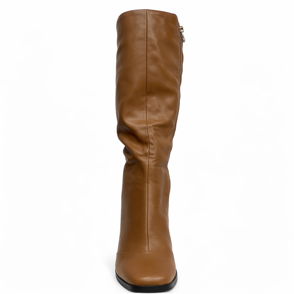 Lo stivale Triangle incarna un’eleganza pulita e femminile, pensata per valorizzare la silhouette con naturalezza. La tomaia liscia accompagna la gamba con morbide pieghe leggere, creando un effetto raffinato e contemporaneo.