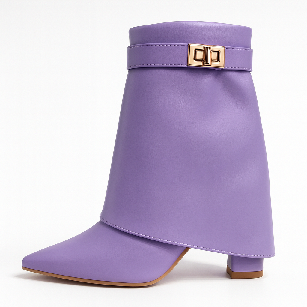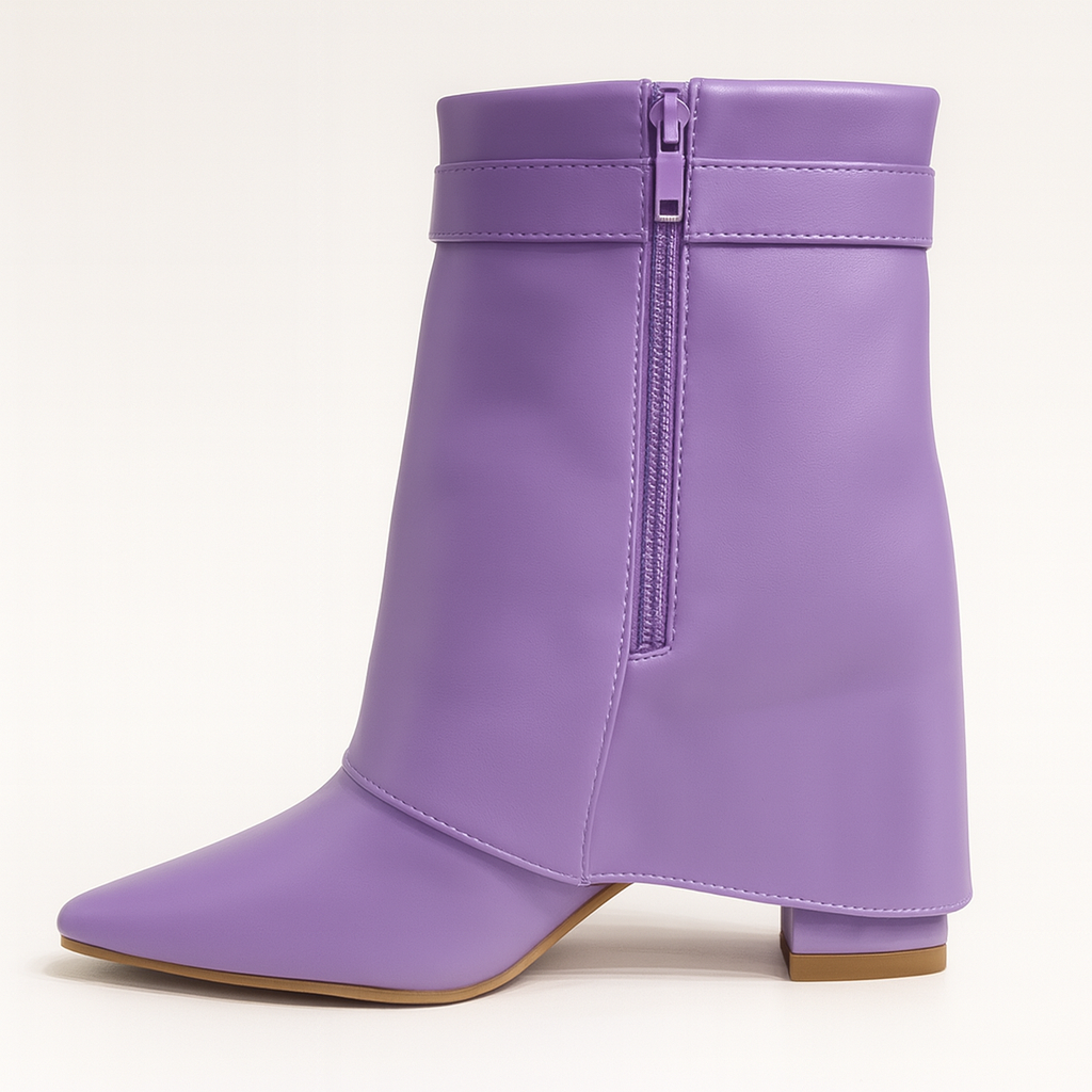 Stivale da donna dal design raffinato e contemporaneo, realizzato in eco-pelle color lilla, morbida e leggermente elasticizzata per adattarsi con comfort alla gamba.
